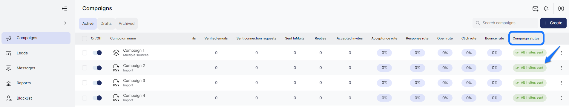 Si vos chiffres sont inférieurs à 200, rendez-vous sur votre tableau de bord des Campagnes et faites défiler vers la droite. -