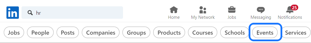 - Tapez le nom de l'événement spécifique dans la barre de recherche LinkedIn.