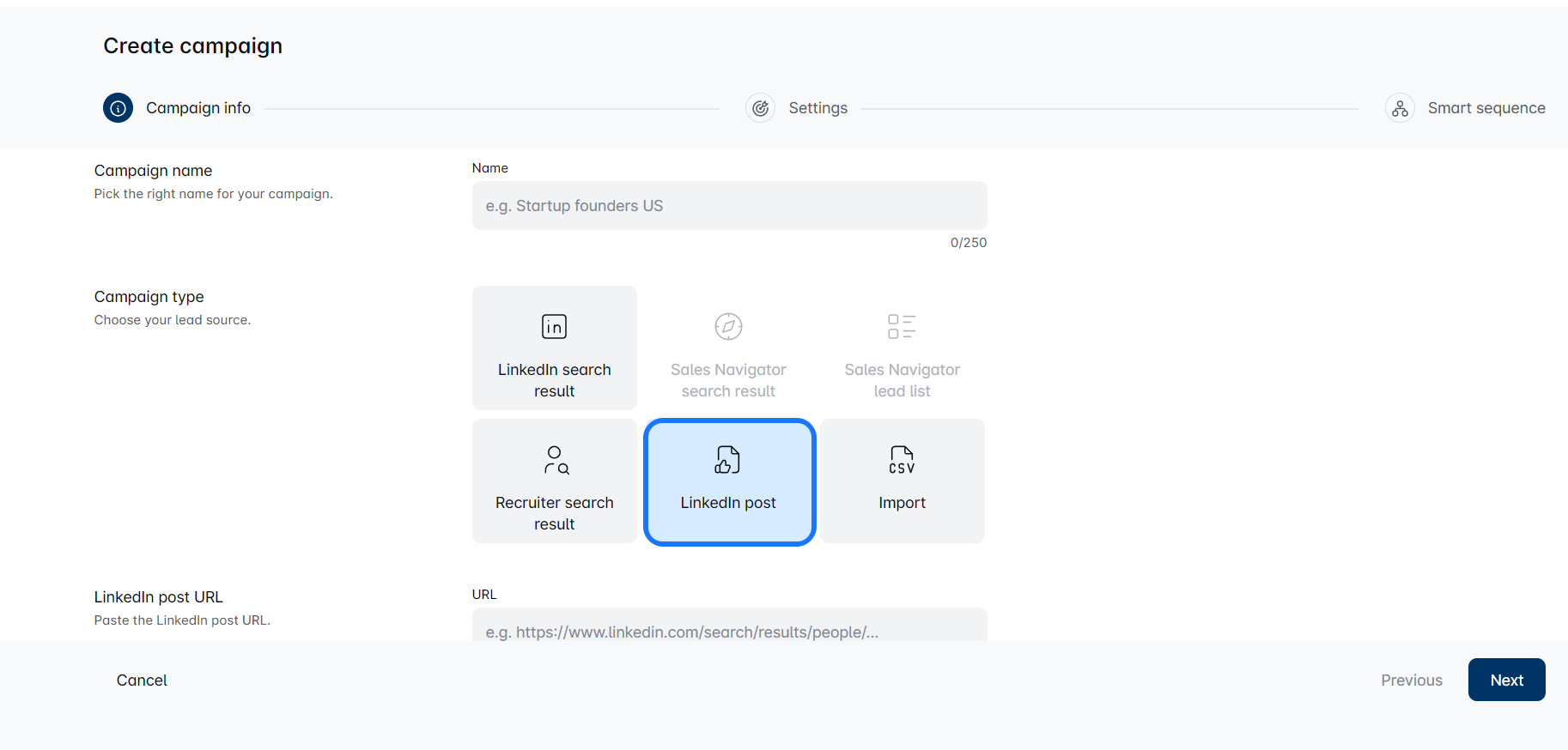 Ciblez les participants aux événements LinkedIn pour vous connecter avec des professionnels partageant vos intérêts ! 🌟 Rejoignez l'événement, consultez les participants et copiez l'URL de recherche. Collez-la dans le LeadIn pour créer une campagne ciblée. Besoin de conseils pour les messages ? Explorez notre blog pour des modèles. Bon réseautage ! 🚀💌