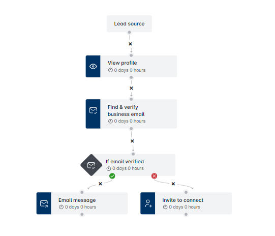 Conseil clé : Que vous meniez une campagne basée sur CSV ou LinkedIn, commencez toujours par l'étape "Trouver et vérifier l'email via LinkedIn".